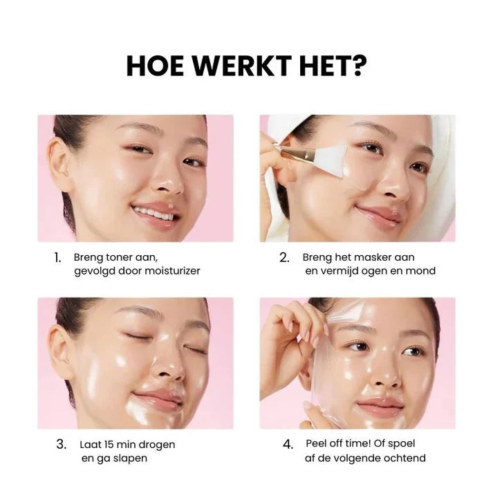 Voor het beste resultaat raden we aan het masker 1 keer per nacht te gebruiken, of minimaal 3–4 nachten per week. Je zult al na de eerste nacht een verschil voelen in hydratatie, en binnen een week een zichtbaar stevigere huid zien.